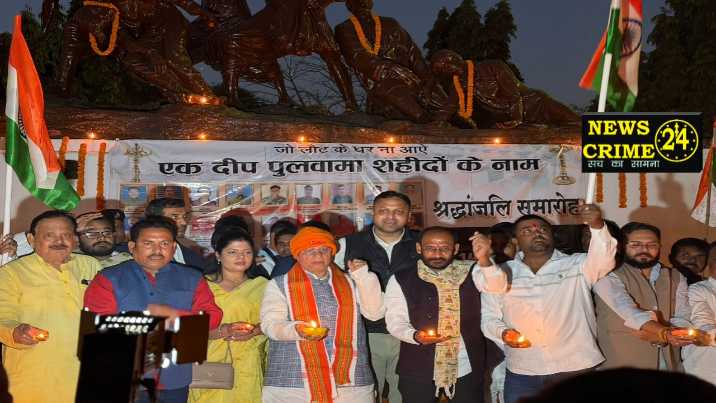 पटना, (न्यूज़ क्राइम 24) आज पुलवामा में शहीद हुए जवानों के सातवीं पुण्यतिथि पर भाजपा क्रीड़ा प्रकोष्ठ के प्रदेश संयोजक श्री सतीश राजू जी के नेतृत्व में सप्तमूर्ति शहीद स्मारक पर 501 दीपक जला कर उन्हे श्रद्धांजलि अर्पित किया गया । श्रद्धांजलि कार्यक्रम में बिहार सरकार के उप मुख्यमंत्री विजय कुमार सिन्हा बतौर मुख्य अतिथि शामिल हुए एवं शहीदों को श्रद्धांजलि अर्पित किए।