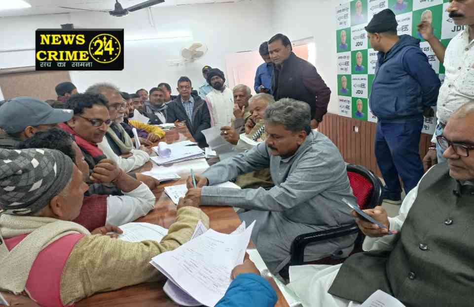 पटना, न्यूज क्राइम 24। बुधवार को जनता दल (यू0) मुख्यालय में आयोजित जनसुनवाई कार्यक्रम में बिहार सरकार के ग्रामीण विकास मंत्री श्रवण कुमार, मद्य निषेध मंत्री सुनील कुमार एवं लघु व जल संसधान मंत्री जयंत राज ने प्रदेशभर के विभिन्न जिलों से पहुंचे आम लोगों की शिकायतों को सुनकर उनके त्वरित निराकरण हेतु सम्बंधित अधिकारियों को आवश्यक दिशा-निर्देश दिये।