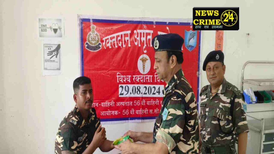 अररिया, रंजीत ठाकुर एसएसबी 56वीं वाहिनी मुख्यालय बथनाहा में गुरुवार को कमांडेंट सुरेंद्र विक्रम के निर्देशन में एक दिवसीय रक्तदान शिविर का आयोजन किया गया। यह शिविर एसएसबी चिकित्सालय बथनाहा में लगाया गया। जिसमें 19 जवानों ने अपना रक्तदान किया । रक्तदान को बढ़ावा देने के उद्देश्य यह शिविर का आयोजन किया गया।