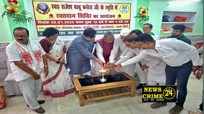 पटनासिटी, (न्यूज़ क्राइम 24) पटना सिटी स्थित कसेरा पंचायत भवन खाजेकला में छोटा सा प्रयास (प्रकृति संरक्षण को समर्पित स्वयं सेवी संस्था) ने समाजसेवी एवं माँ गंगा सेवा समिति के संस्थापक सदस्य स्व.राजेश बाबू कसेरा जी के पुण्य स्मृति में रक्तदान दान का आयोजन किया गया। इस आयोजन के उदघाटन बिहार विधान सभा के अध्यक्ष श्री नन्द किशोर यादव एवं पूर्व केंद्रीय मंत्री डॉ.शकील अहमद सयुक्त रूप से एवं मुख्य अतिथि वार्ड 65 के पार्षद तरुणा राय ने किया।