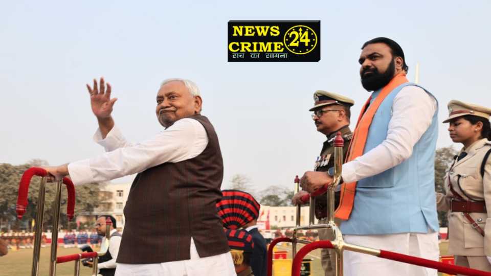 पटना, सोनू कुमार :  मुख्यमंत्री नीतीश कुमार आज बिहार विशेष सशस्त्र पुलिस- 5 स्थित मिथिलेश स्टेडियम में बिहार पुलिस सप्ताह-2026 के अवसर पर आयोजित सामूहिक परेड-सह-वार्षिक पारितोषिक वितरण समारोह में शामिल हुए।