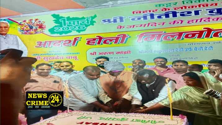 फुलवारीशरीफ, अजित। संपतचक नगर परिषद क्षेत्र के एकतापुरम भोगीपुर स्थित माता सुमित्रा देवी कॉमर्शियल फ्लोर में रविवार को बिहार के मुख्यमंत्री नीतीश कुमार के जन्मदिवस पर भव्य “आदर्श होली मिलनोत्सव–2026” का वायु वृद्धि सामाजिक कार्यकर्ता सुखदेव बाबू के नेतृत्व में आयोजन किया गया. इस अवसर पर पटना के संपतचक में मुख्यमंत्री के जन्मदिन का अब तक का सबसे बड़ा केक काटा गया, जो समारोह का मुख्य आकर्षण रहा. केक कटते ही पूरा परिसर तालियों और उत्साह से गूंज उठा.इस मौके पर विधायक सह सचेतक बिहार विधान सभा अरुण मांझी, पुलवामा के अमर शहीद संजय कुमार सिन्हा की धर्मपत्नी शकुन्तला देवी उर्फ बेबी देवी, 20 सूत्री कार्यक्रम क्रियान्वयन समिति के उपाध्यक्ष रंजीत कुमार उर्फ टप्पु , नगर परिषद संपतचक वार्ड संख्या 14 की पार्षद नीतू कुमारी समेत कई गणमान्य लोग मौजूद रहे।
