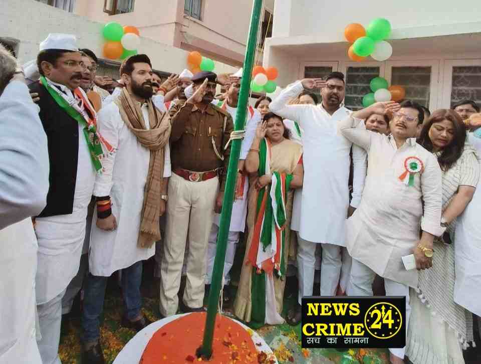 पटना(न्यूज क्राइम 24): लोक जनशक्ति पार्टी रामविलास ने पटना के श्रीकृष्णापुरी स्थित प्रदेश कार्यालय में हर्षोल्लास के साथ गणतंत्र दिवस समारोह मनाया। झंडोत्तोलन के राष्ट्रीय अध्यक्ष आदरणीय श्री चिराग पासवान ने झंडोत्तोलन किया, जहां पार्टी केप्रदेश अध्यक्ष श्री राजू तिवारी के साथ सभी पदाधिकारी मौजूद रहे।
