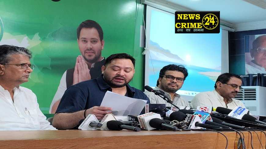 पटना, (न्यूज़ क्राइम 24) नेता प्रतिपक्ष तेजस्वी प्रसाद यादव ने अपने आवास 01 पोलो रोड, पटना में संवाददाता सम्मेलन को संबोधित करते हुए कहा कि बिहार में चुनाव आयोग के द्वारा एसआईआर के नाम पर लोकतंत्र को खत्म करने की साजिश की जा रही है। जहां चुनाव आयोग बिना राजनीतिक दलों की सहमति के ही एसआईआर कराने का निर्णय लिया। वहीं चुनाव आयोग ने राजनीतिक दलों के शिकायत और सुझाव को नहीं माना। जबकि इसके प्रक्रिया, टाइमिंग, दस्तावेज में आधार, जॉब कार्ड, राशन कार्ड और ईपीक नम्बर को शामिल करने का सुझाव राजनीतिक दलों की ओर से दिया गया था