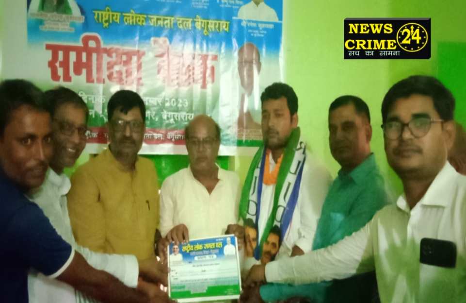 बछवाड़ा, राकेश यादव। बेगूसराय प्रखंड क्षेत्र के बछवाड़ा बाजार स्थित आर्मी हेल्थ क्लब नारेपुर में राष्ट्रीय लोक जनता दल कार्यकर्ताओं की बैठक आयोजित की गई। बैठक की अध्यक्षता जिलाउपाध्यक्ष संदीप कुमार ने किया।बैठक में कार्यकर्ताओं ने सर्वसम्मति से रानी एक पंचायत के नारेपुर पश्चिम गांव निवासी दिलीप कुमार को प्रखंड अध्यक्ष व दीपक कुमार यादव को जिला उपाध्यक्ष (आईटी सेल) के पद पर मनोनीत किया गया।