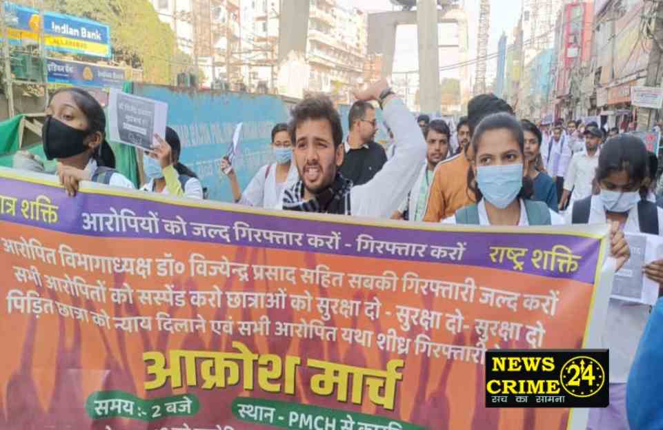 आज समूचे बिहार में आक्रोश मार्च निकाला गया है यह बहुत ही खतरनाक है एक विभाग के अध्यक्ष के द्वारा छात्रा से यौन शोषण करने की प्रयास किया गया वह भी पास करने के नाम पर जिसका सभी साक्ष्य मौजूद है। आक्रोश मार्च पीएमसीएच से कारगिल चौक तक निकल। गया जिसमें सैकड़ो छात्र मौजूद रहे। आंदोलन में संगठन के महासचिव सुरेंद्र कुमार सुमन उपाध्यक्ष लकी कुमार, दिग्विजय प्रताप नारायण सिंह कृष्ण कुमार निशा कुमारी सहित संगठन के तमाम छात्र-छात्राएं मौजूद रहे। आक्रोश मार्च में निशा कुमारी कोमल कुमारी विकास कुमार मनोहर कुमार, प्रीयेश कुमार, विशाल कुमार,भास्कर कुमार मौजूदा था।