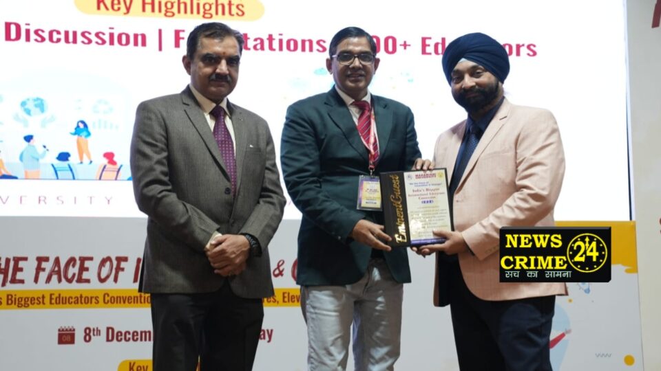 नई दिल्ली, (न्यूज़ क्राइम 24) एन डी ऍम सी कोन्वेंसन सेंटर में महर्षि विश्वविद्यालय द्वारा आयोजित बी द फेस ऑफ़ इनोवेशन एंड चैज अंतर्राष्ट्रीय शिक्षाविद सम्मलेन 2024 में होली विज़न ग्रुप ऑफ़ स्कूल के निदेशक डॉ संतोष कुमार शर्मा सी. बी. एस. सी. के जॉइंट सेक्रेटरी डॉ आर. पी. सिंह. और महर्षि यूनिवर्सिटी के वाईस चांसलर डॉ भानु प्रताप सिंह को द्वारा ग्रेट एजुकेशनिस्ट ऑफ़ ईयर से सम्मानित किया गया