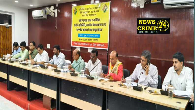 अररिया, रंजीत ठाकुर। अर्हता तिथि 01 जुलाई 2025 के आधार पर विशेष गहन पुनरीक्षण,2025 के क्रम में मतदान केंद्रों का युक्तिकरण से संबधित जिला निर्वाचन पदाधिकारी सह जिलाधिकारी अनिल कुमार की अध्यक्षता में बुधवार को परमान सभागार में सभी मान्यता प्राप्त राजनैतिक दलों विधायकगण के साथ विशेष बैठक आहूत की गई। सर्वप्रथम जिलाधिकारी द्वारा उपस्थित सभी विधायक के स्वागत के साथ बैठक की कार्यवाही प्रारंभ की गई। बैठक में बताया गया कि भारत निर्वाचन आयोग के दिशा निर्देश में प्रत्येक मतदान केंद्र पर 1200 निर्वाचकों के मानक के आधार पर मतदान केंद्रों का युक्तिकरण किया जा रहा है। प्रत्येक मतदान केंन्द्रो पर 1200 से अधिक मतदाता न हो,इसे ध्यान में रखते हुए एवं दावा आपत्ति की अवधि 30 जून से 06 जुलाई 2025 तक प्राप्त आपत्ति के निस्तारण के पश्चात युक्तिकरण प्रस्ताव तैयार किया गया है।