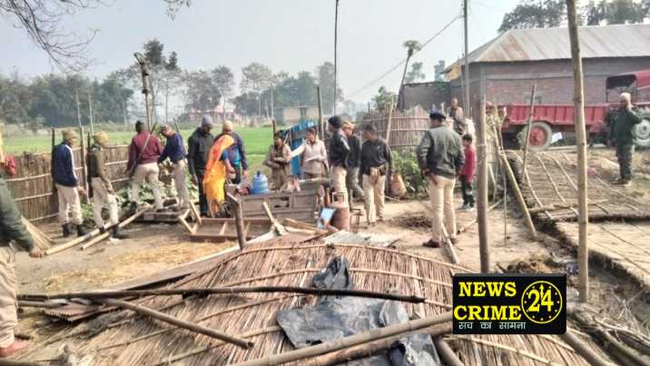 फुलकाहा पुलिस ने चौदह साल पुराने दो मामलों में फरार चल रहे एक आरोपित के घर की कुर्की जब्ती