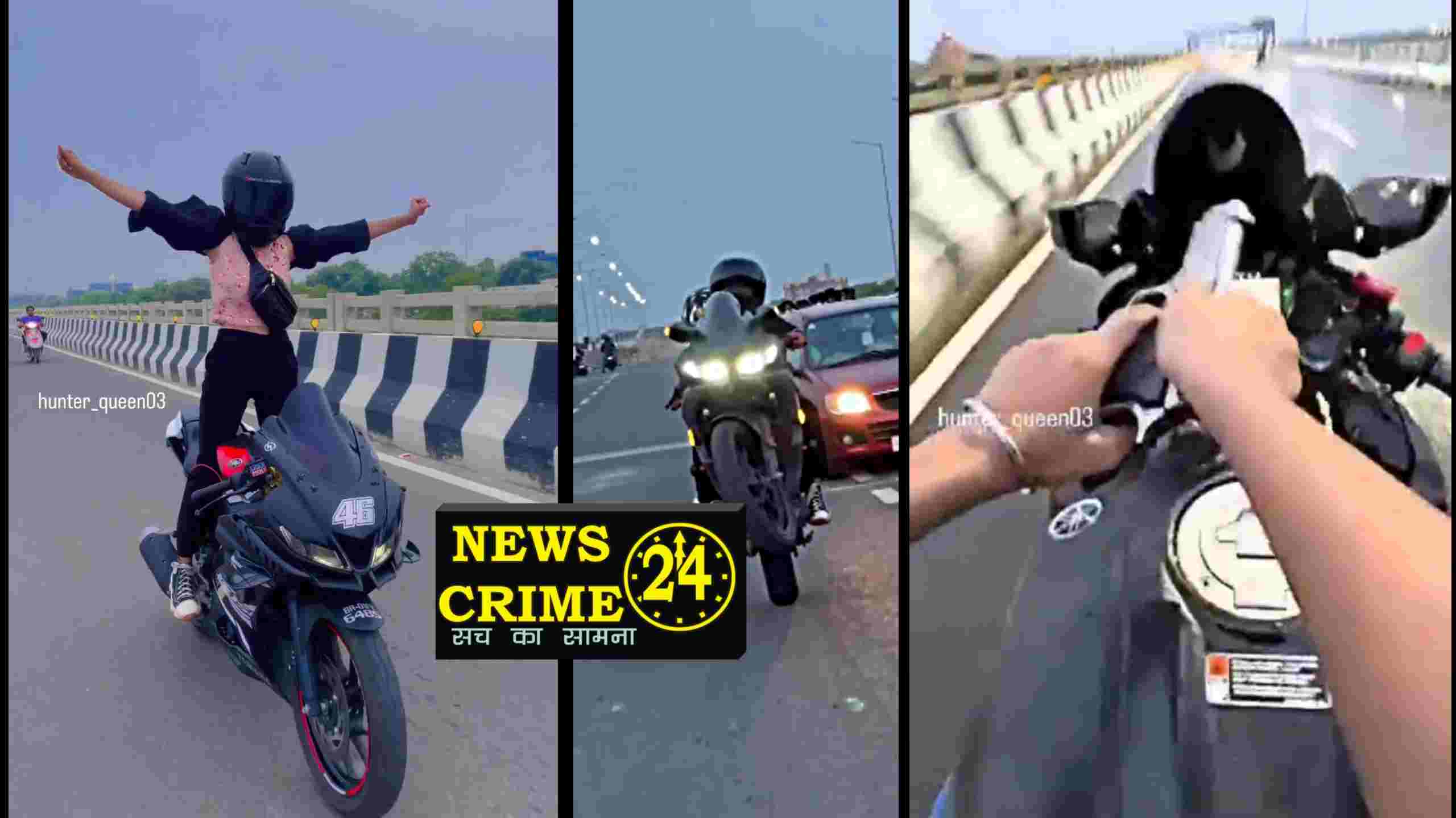 पटना(रॉबीन राज, न्यूज़ क्राइम 24): सोशल मीडिया पर लगातार युवक और युवतियों की बाइक से खतरनाक स्टंट करने और रील बनाने की कई वीडियो सामने आ रहे हैं। जिसपर पुलिस की लगातार कार्रवाई के बाद भी इस तरह की घटनाएं कम नहीं हो रही हैं। ऐसी बहुत सी स्टंट की वीडियो सोशल मीडिया पर मौजूद है जिसका कुछ पता नहीं चल पाता और जिसके बारे मे पुलिस-प्रशासन को जानकरी मिलती तो उसपर कारवाई होती हैं। ऐसे मे स्टंट बोले या फिर मौत का खेल हो, लेकिन सड़कों पर आए दिन देखने को मिल रहे है जिससे की सड़कों पर सफर करने वाले आमजन को यह हैरतअंगेज स्टंट देखकर डर लगता हैं की कब उनसे टकरा जाए और कोई बड़ी दुर्घटना का शिकार हो जाए।