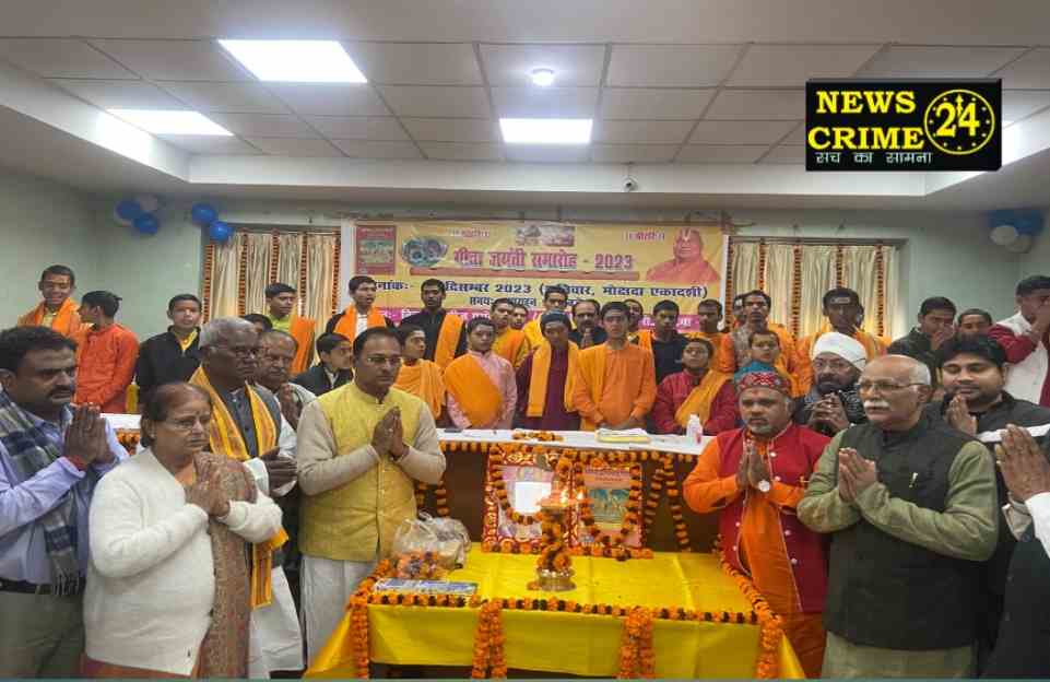 आरंभ में अतिथियों द्वारा दीप-प्रज्वलन कर समारोह का उद्घाटन किया गया। इसके उपरांत ‘संत पशुपति नाथ वेद विद्यालय के आचार्य पं अजीत कुमार तिवारी के नेतृत्व में पंडितों और वेद विद्यालय के बटुकों द्वारा वैदिक-ऋचाओं के पाठ के साथ गीता का सविधि पूजन किया गया।