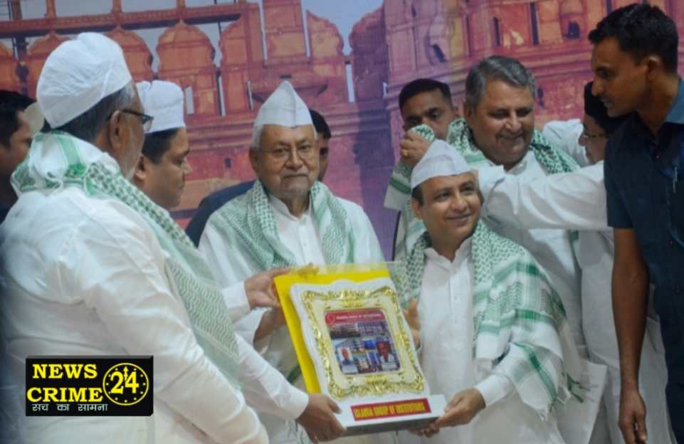 फुलवारीशरीफ(अजीत यादव): बिहार के मुख्यमंत्री नीतीश कुमार सोमवार को फुलवारी शरीफ में इस्लामिया टीचर्स ट्रेंनिंग बी एड कॉलेज परिसर में आयोजित एक दावत इफ्तार में शामिल होने पहुंचे, जहां मुख्यमंत्री नीतीश कुमार के मंच के बैक सपोर्ट पर लगाए गए लाल किले के पोस्टर से राज्य में सियासी हलचल तेज हो गई है। इस दावते इफ्तार में जेडीयू एमएलसी खालिद अनवर भी शरीक हुए।