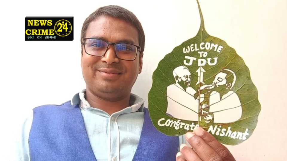 पटना, (न्यूज़ क्राइम 24) बिहार की कला जगत में एक बार फिर अपनी अनोखी प्रतिभा से पहचान बनाने वाले भारत के प्रसिद्ध अंतर्राष्ट्रीय लीफ आर्टिस्ट मधुरेंद्र कुमार ने युवा नेता निशांत कुमार को एक खास अंदाज में बधाई दी है। उन्होंने पीपल के छोटे से हरे पत्ते पर अद्भुत कलाकृति बनाकर “Welcome to JDU – Congrats Nishant” (वेलकम टू जदयू- कांग्रेट्स निशांत) लिखते हुए अपनी शुभकामनाएं प्रकट की हैं।