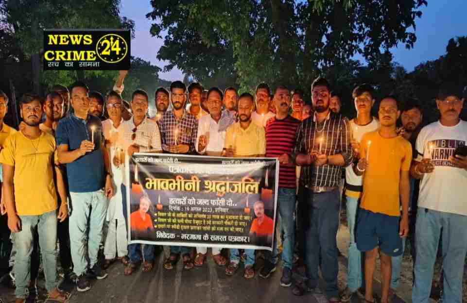 अररिया(रंजीत ठाकुर): अररिया जिले के रानीगंज के पत्रकार विमल यादव की हत्या के विरोध में भरगामा के सभी पत्रकारों एवं समाजसेवियों ने शोक जताते हुए शनिवार को पत्रकारों ने कैंडल मार्च निकाला। कैंडल मार्च सुकेला मोड़ ब्लॉक चौक होते हुए प्रखंड मुख्यालय पहुंचा। मार्च में शामिल लोग अपने हाथ में काला पट्टी लगा रखा था। व शहीद पत्रकार विमल अमर रहे का नारा लगा रहे थे। पत्रकारों ने पीड़ित के परिजनों को आर्थिक मदद की मांग करते हुए मृतक की आत्मा की शांति के लिए 2 मिनट का मौन रखा।
