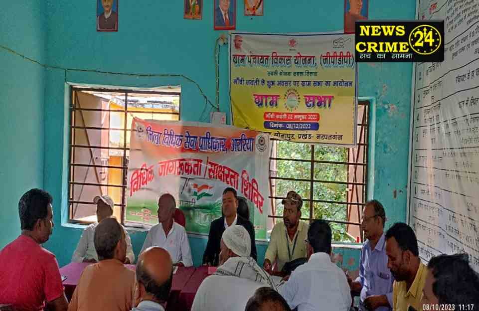 अररिया, रंजीत ठाकुर। जिला विधिक सेवा प्राधिकार अररिया के तत्वावधान में आज रविवार को नरपतगंज प्रखंड अंतर्गत सोनापुर पंचायत भवन में मुखिया कृत्यनन्द राम के मौजूदगी में विधिक जागरूकता शिविर आयोजित की गई। जागरूकता शिविर का संचालन पैनल अधिवक्ता श्रवण कुमार झा एवं पारा विधिक सेवक विनय कुमार ठाकुर के द्वारा किया गया। शिविर में प्राधिकार द्वारा चलाई जा रही विधिक सेवाओं के बारे में उपस्थित लोगों को विस्तार पूर्वक जानकारी दी गई। इसके अतिरिक्त अन्य कानूनी सुविधा निःशुल्क कैसे प्राप्त कर सकते है इसकी भी जानकारी अधिवक्ताओं के द्वारा बताई गई।