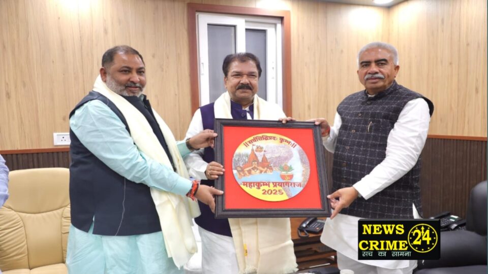 पटना, (न्यूज़ क्राइम 24) प्रयागराज में आगामी वर्ष 13 जनवरी से प्रारंभ होने वाले महाकुंभ मेले में सम्मिलित होने के लिए उत्तर प्रदेश सरकार के कैबिनेट मंत्री, माननीय श्री राकेश सचान जी एवं माननीय श्री दयाशंकर सिंह जी ने आदरणीय भाजपा प्रदेश अध्यक्ष एवं राजस्व और भूमि सुधार मंत्री, डॉ. दिलीप जायसवाल जी को आत्मीय भेंट कर औपचारिक आमंत्रण प्रदान किया।