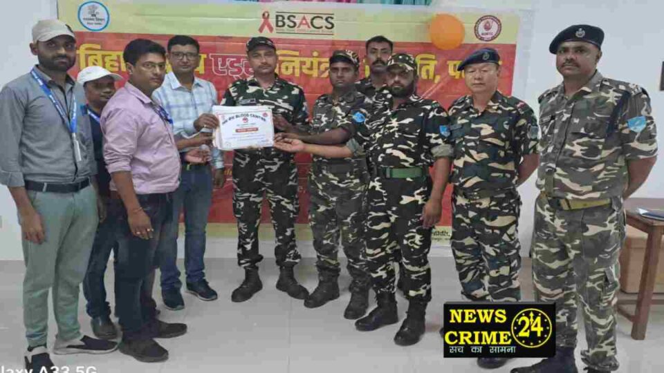 अररिया, रंजीत ठाकुर विश्व रक्तदान दिवस के मौके पर जिले में रक्तदान को बढ़ावा देने व साल में चार बार रक्तदान के लिए अररिया निवासी मो० जावेद को राज्यस्तरीय सम्मान से सम्मानित किया गया। सदर अस्पताल परिसर स्थित ब्लड बैंक में आयोजित कार्यक्रम के दौरान सिविल सर्जन डॉ विधानचंद्र सिंह, एमओ राजेश कुमार, डीपीएम संतोष कुमार द्वारा उन्हें प्रशस्ति पत्र व मुमेंटो देकर सम्मानित किया गया। मौके पर ब्लड बैंक के एलटी बादल कुमार, मदन लाल यादव, मो० इस्माइल, टीपू कुमार मिश्रा, कॉनसेलर नितेश कुमार सहित अन्य मौजूद थे। विश्व रक्तदान दिवस के मौके पर जिले में विभिन्न जागरूकता संबंधी कार्यक्रम के मध्यम से आम लोगों को स्वैच्छिक रक्तदान के लिए जागरूक किया गया। मौके पर एसएसबी 52 बटालियन मुख्यालय में आयोजित रक्तदान शिविर में कुल 28 यूनिट व ब्लड बैंक में आयोजित शिविर में 04 यूनिट ब्लड संग्रह किया गया।