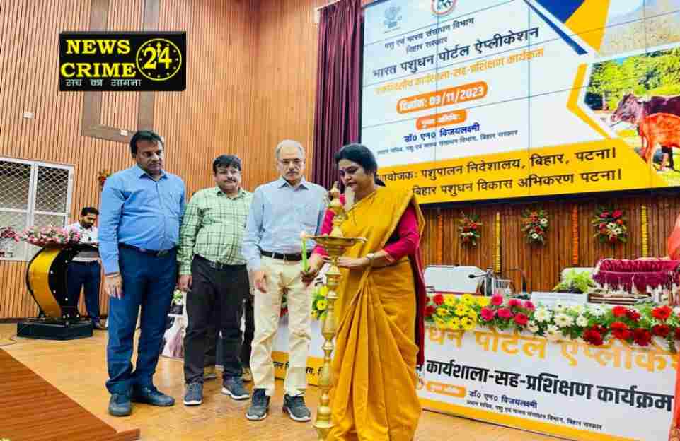 फुलवारी शरीफ़, अजीत। गुरूवार को बामेती सभागार, पटना में डॉ० एन० विजयलक्ष्मी, प्रधान सचिव, पशु एवं मत्स्य संसाधन विभाग, बिहार की अध्यक्षता में “भारत पशुधन पोर्टल एप्लीकेशन को राज्य में क्रियान्वयन हेतु एक दिवसीय कार्यशाला – सह – प्रशिक्षण कार्यक्रम का आयोजन किया गया. डॉ० एन० विजयलक्ष्मी, प्रधान सचिव द्वारा दीप प्रज्जवलित कर कार्यक्रम का उद्घाटन किया गया. प्रशिक्षण में राज्य के सभी क्षेत्रीय निदेशक, पशुपालन, जिला पशुपालन पदाधिकारी, जिला नोडल पदाधिकारी, सहायक जिला नोडल पदाधिकारी तथा कार्य से जुड़े कम्प्युटर ऑपरेटर ने भाग लिया.