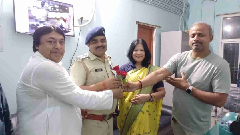 चौक थाना के नवनियुक्त थानाप्रभारी अनिरुद्ध प्रसाद का स्वागत एवं सम्मान अंग वस्त्र और बुके देकर किया। वहीं पूर्व थाना अध्यक्ष गौरी शंकर गुप्त को भी चौक थाना में सर्किल इंस्पेक्टर के रूप में पदभार ग्रहण करने को लेकर अंग वस्त्र और बुके देकर सम्मानित किया।