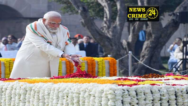 नई दिल्ली, (न्यूज़ क्राइम 24) राष्ट्रपिता महात्मा गांधी की पुण्यतिथि शहीद दिवस पर प्रधानमंत्री नरेंद्र मोदी राजघाट पहुंचे. पीएम मोदी ने बापू की समाधि पर श्रद्धासुमन अर्पित किए. राष्ट्रपति द्रौपदी मुर्मू और उपराष्ट्रपति सीपी राधाकृष्णन ने राजघाट पर बापू की समाधि पर श्रद्धांजलि दी.