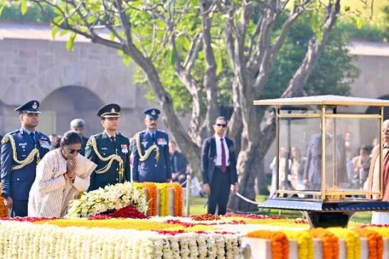 राष्ट्रपति, प्रधानमंत्री ने राजघाट में महात्मा गांधी की समाधि पर पुष्पांजलि अर्पित की