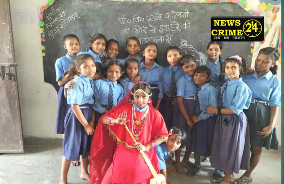 शनिवार को प्राथमिक विद्यालय प्रखंड कॉलोनी फुलवारी शरीफ, पटना में मां दुर्गा के आगवन पर छोटे-छोटे बच्चे द्वारा मां दुर्गा का रूप धारण कर मन मोह लिया.शिक्षिका ने बच्चों को अपने संस्कृति के बारे में जानकारी दिया. दुर्गापूजा का महापर्व बुराई के ऊपर अच्छाई की विजय के बारे में बताया.
