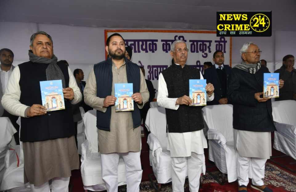 पटना, (न्यूज क्राइम 24) भारत रत्न जननायक कर्पूरी ठाकुर जी की १००वीं जयंती के अवसर पर बिहार विधान मंडल परिसर में बुधवार को आयोजित राजकीय समारोह में राज्यपाल राजेन्द्र विश्वनाथ आर्लेकर एवं मुख्यमंत्री नीतीश कुमार द्वारा उप मुख्यमंत्री तेजस्वी प्रसाद यादव, विधान सभा अध्यक्ष अवध बिहारी चौधरी, वाणिज्य कर एवं संसदीय कार्य मंत्री विजय कुमार चौधरी तथा अन्य माननीय मंत्रीगण के साथ जिला प्रशासन, पटना द्वारा प्रकाशित पुस्तक ‘राजकीय समारोह’ का विमोचन किया गया। इस पुस्तक में उन महान विभूतियों की जीवनी का विवरण है जिनके संस्मरण में पटना जिला में राजकीय समारोहों का आयोजन किया जाता है।