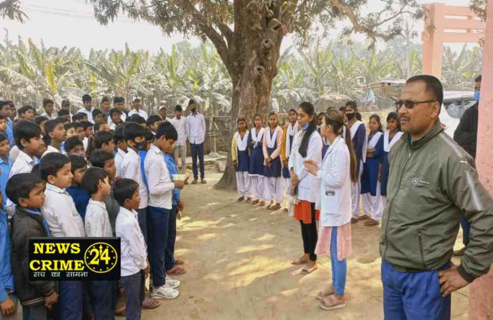 मध्य विद्यालय सिमरिया में कैम्प लगाकर स्कूली बच्चों को कैंसर से सुरक्षा के लिए किया गया जागरूक