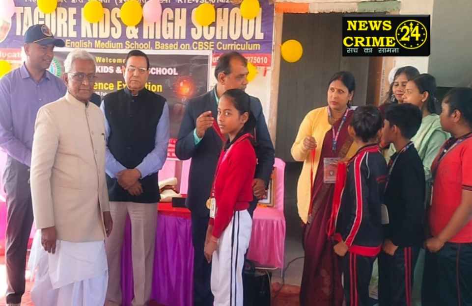 वैशाली, (न्यूज क्राइम 24) जिला मुख्यालय हाजीपुर, मेदनीमल स्थित टैगोर किड्स एंड हाई स्कूल में राष्ट्रीय विज्ञान दिवस के अवसर पर बच्चों द्वारा विज्ञान प्रदर्शनी का आयोजन किया गया। इस प्रदर्शनी का उद्घाटन देश-दुनिया में चर्चित चिकित्सक पद्मश्री डॉ जितेन्द्र कुमार सिंह, डी.सी.कॉलेज के प्राचार्य डॉ तारकेश्वर पंडित शिक्षाविद प्रो (डॉ) जितेन्द्र प्रसाद सिंह,चर्चित होम्योपैथिक चिकित्सक डॉ अमर आलोक भारतीय वायु सेना के विजिलेंस ऑफिसर रवि भूषण एवं स्कूल के निदेशक डॉ शशि भूषण कुमार ने संयुक्त रूप से किया।