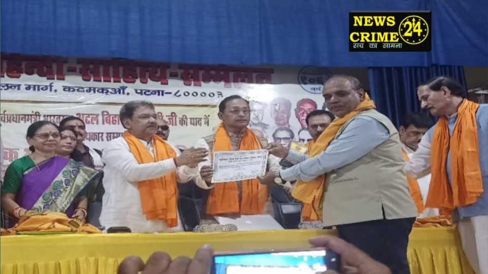 पटना, (न्यूज़ क्राइम 24) एजुकेशन रिसर्च एंड डेवलपमेंट संस्थान, पटना द्वारा पूर्व प्रधानमंत्री भारत रत्न अटल बिहारी वाजपेयी जी की याद में सम्मेलन सभागार में आयोजित एक भारत श्रेष्ठ भारत एवं अटल साहित्यकार सम्मान समारोह में मुख्य अतिथि के रूप में पहुंचे बिहार सरकार के स्वस्थ मंत्री मंगल पाण्डेय एवं पूर्व मंत्री सह भाजपा बिहार प्रदेश अध्यक्ष दिलीप जयसवाल। इस कार्यक्रम के संयोजक एजुकेशन रिसर्च एंड डेवलपमेंट संस्थान के अध्यक्ष विनोद शर्मा एवं अध्यक्षता सम्मेलन के अध्यक्ष डॉ अनिल सुलभ कर रहे थे। इस कार्यक्रम में बिहार के कई जिलों से पहुंचें साहित्यकार और साहित्य प्रेमियों को सम्मानित किया गया।
