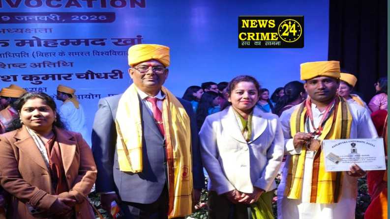 पटना, (न्यूज़ क्राइम 24) पाटलिपुत्र विश्वविद्यालय के प्राचीन इतिहास, संस्कृति एवं पुरातत्व विभाग के छात्र सुनील कुमार को स्नातकोत्तर परीक्षा में सर्वाधिक अंक प्राप्त करने के लिए विश्वविद्यालय द्वारा आयोजित पांचवें दीक्षांत समारोह में स्वर्ण पदक से सम्मानित किया गया। यह सम्मान दिनांक 29 जनवरी 2026 को आयोजित समारोह में विश्वविद्यालय के कुलपति प्रो. उपेंद्र नाथ प्रसाद एवं प्रमुख सचिव डॉ. रॉबर्ट एल. चोंग्थू के कर-कमलों से प्रदान किया गया।