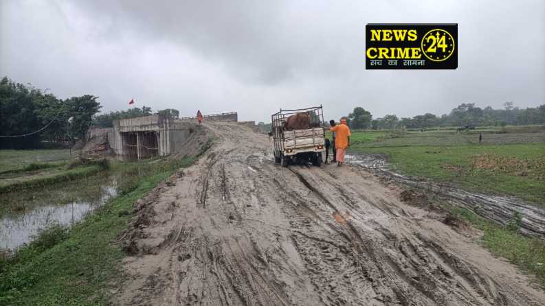 पुल निर्माण कंपनी की मनमानी अप्रोच पथ निर्माण कार्य में लापरवाही आवागमन में हो रही है परेशानी
