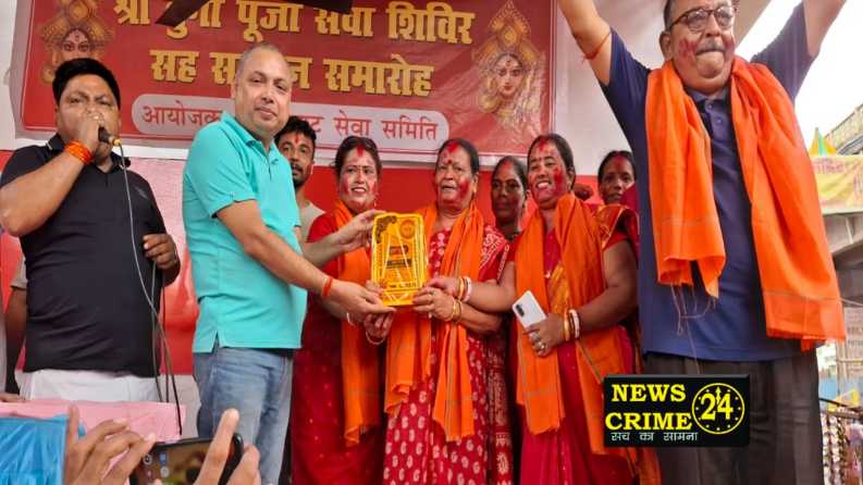 मूर्ति विसर्जन शोभा यात्रा में शामिल पूजा समितियों को अंग वस्त्र, शील्ड व मेडल से किया गया सम्मानित
