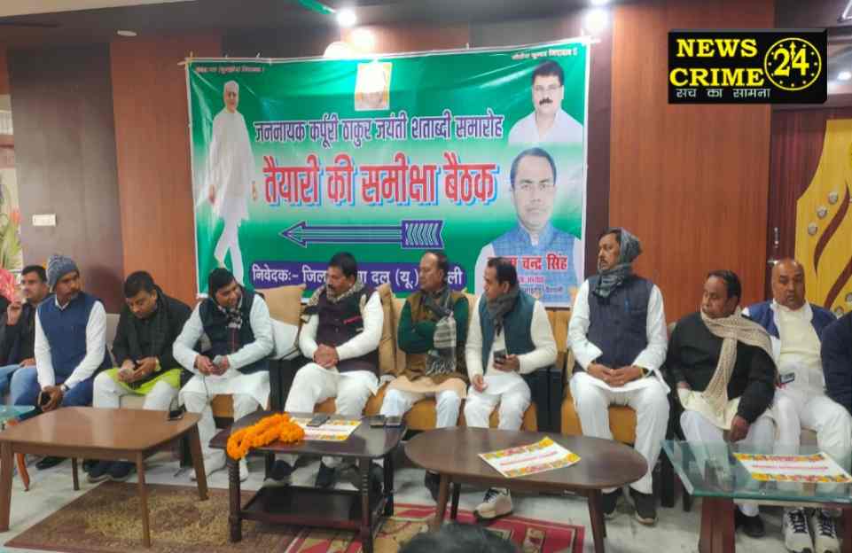 पटना, (न्यूज क्राइम 24) जनता दल(यू०) की ओर से 24 जनवरी को प्रस्तावित जननायक कर्पूरी ठाकुर जन्मशताब्दी समारोह को सफल बनाने के लिए पार्टी के माननीय प्रदेश अध्यक्ष श्री उमेश सिंह कुशवाहा ने शनिवार को हाजीपुर जिला अतिथि गृह में वैशाली जिला के पार्टी पदाधिकारियों एवं कार्यकर्ताओं के साथ तैयारी बैठक की। बैठक में उन्होंने तैयारियों की समीक्षा की एवं स्थानीय नेताओं से कार्ययोजनाओं की जानकारी ली।