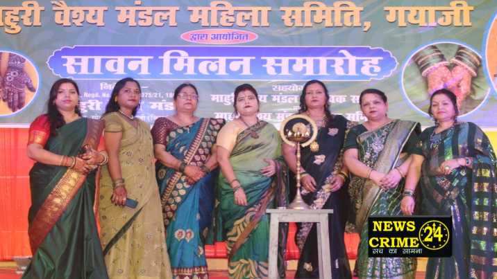गया, सौरव। श्रावण मास की पावन बेला में माहुरी वैश्य मंडल, गया द्वारा “सावन मिलन समारोह” का भव्य आयोजन किया गया। इस सांस्कृतिक कार्यक्रम की मेज़बानी महिला समिति ने की, जिसमें समाज की सैकड़ों महिलाओं ने पारंपरिक परिधान और हरियाली की थीम के साथ भाग लिया। कार्यक्रम की शुरुआत दीप प्रज्वलन से हुई। मंच को पुष्पों की माला, हरित पर्दों और आकर्षक प्रकाश सज्जा से सजाया गया, जिससे पूरे परिसर में सावन की छटा बिखर गई।
